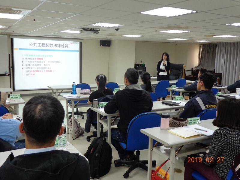 加強員工對工程法律觀念,以「工程履約管理」及「法院實例」作為主軸,配合工程會契約範本,將契約所明定之各階段履約管理及法院實務案例討論,特邀法律事務所律師作精闢之剖析。