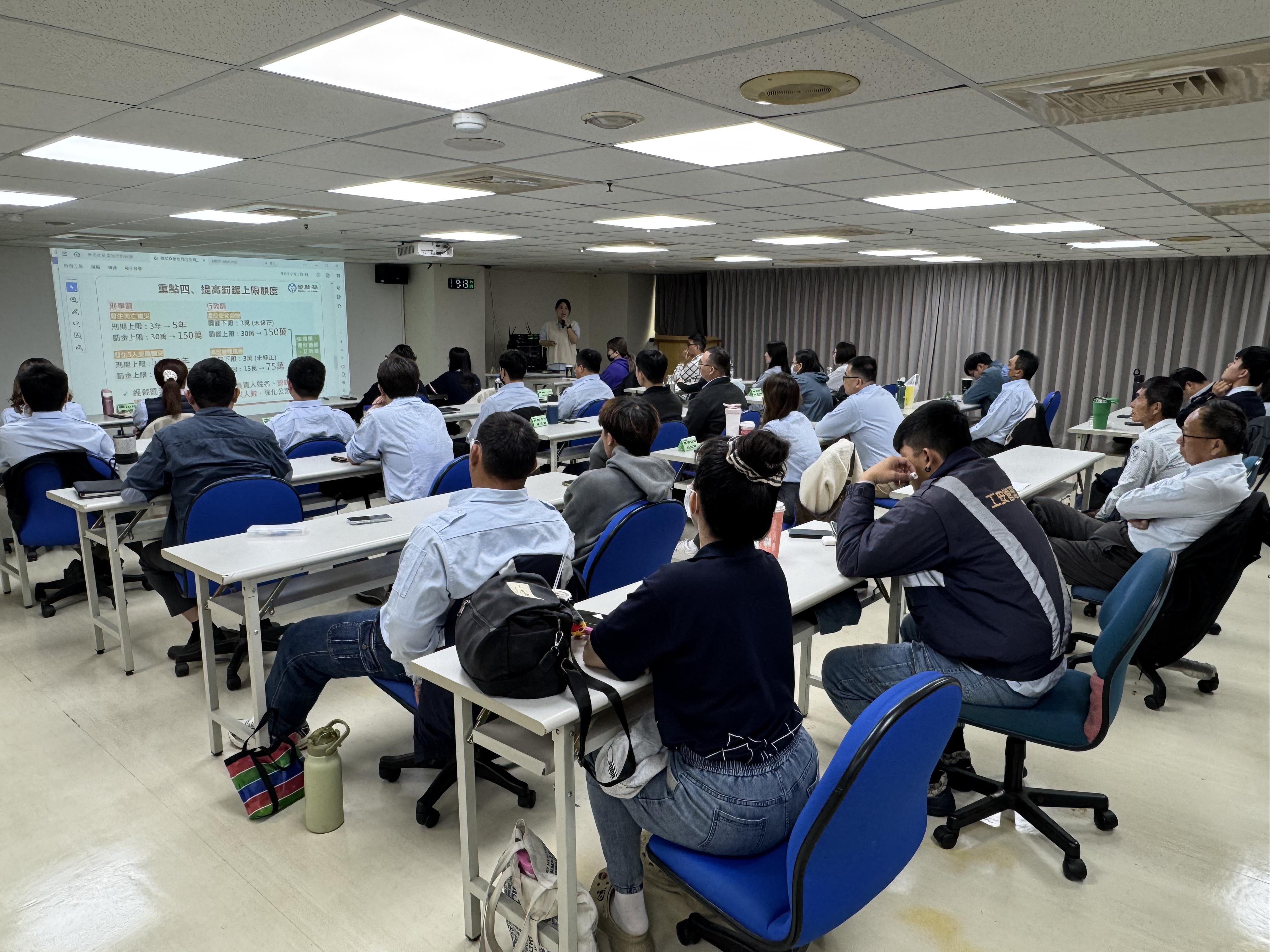 加強勞工作業安全、提升安全知能,配合勞動部職安署辦理臺灣職安卡教育訓練。