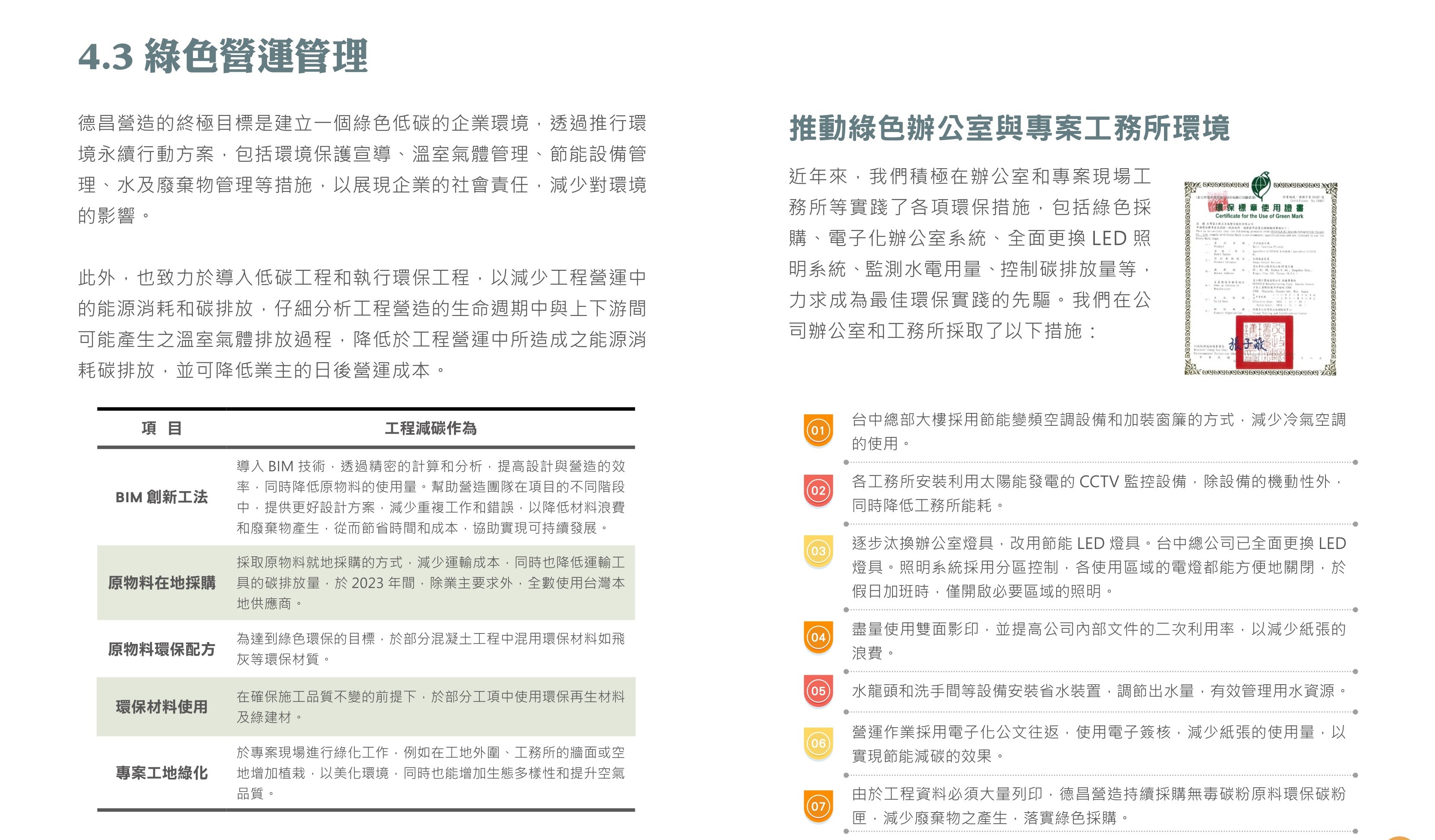 降低營運與施工環境衝擊