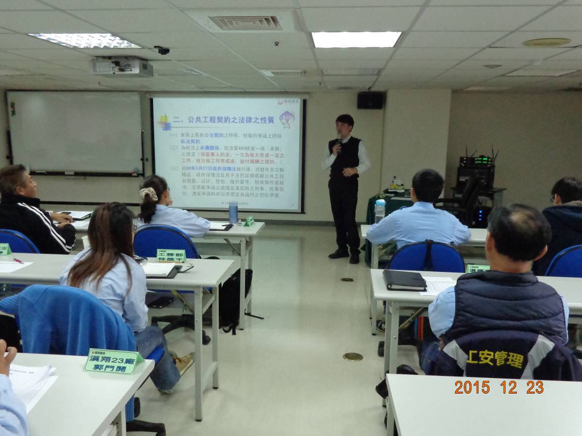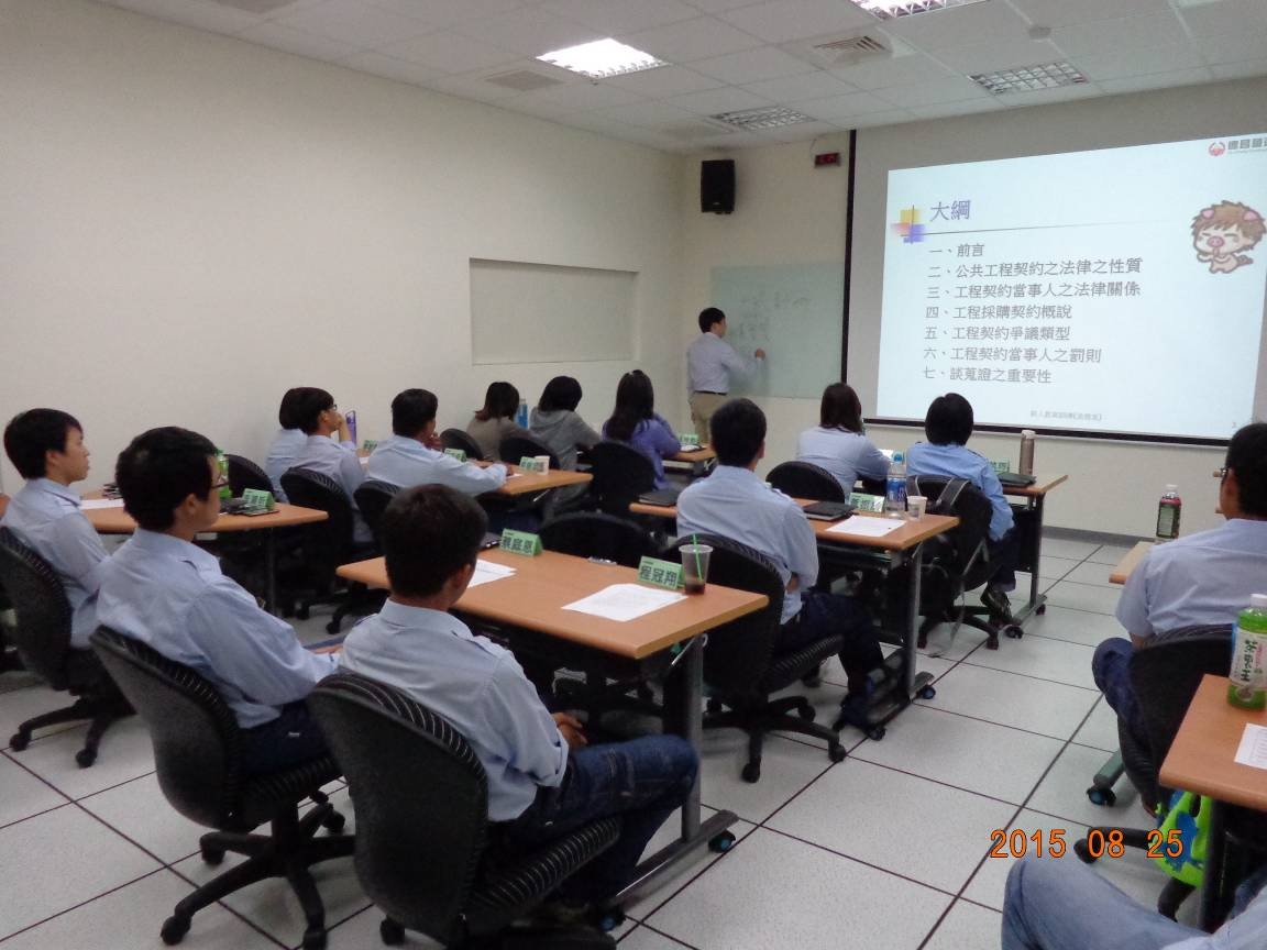 加強員工對工程法律觀念,以「工程履約管理」及「法院實例」作為主軸,配合工程會契約範本,將契約所明定之各階段履約管理及法院實務案例討論,特邀法律事務所律師作精闢之剖析。