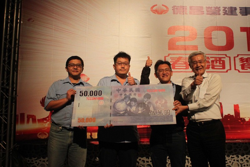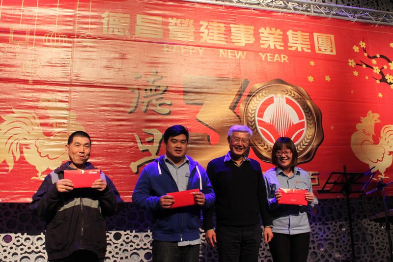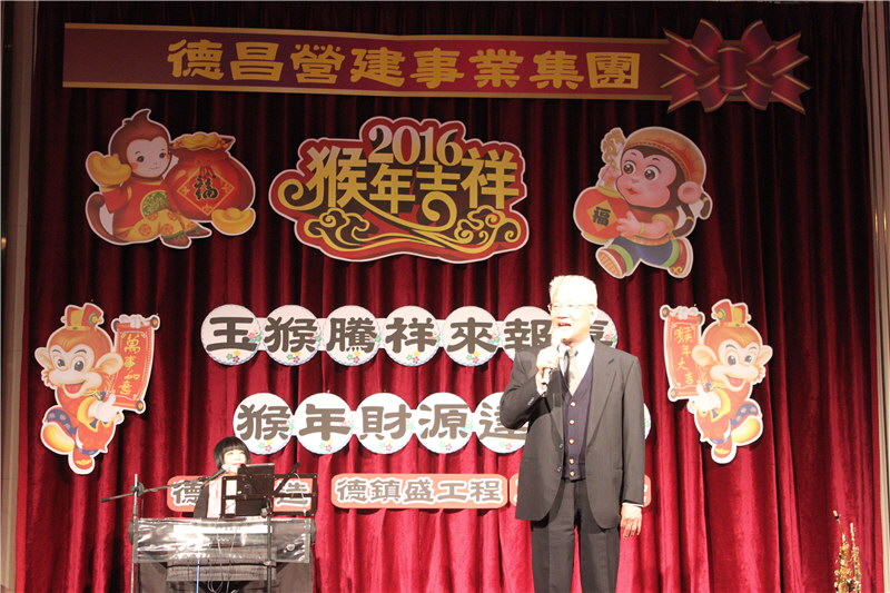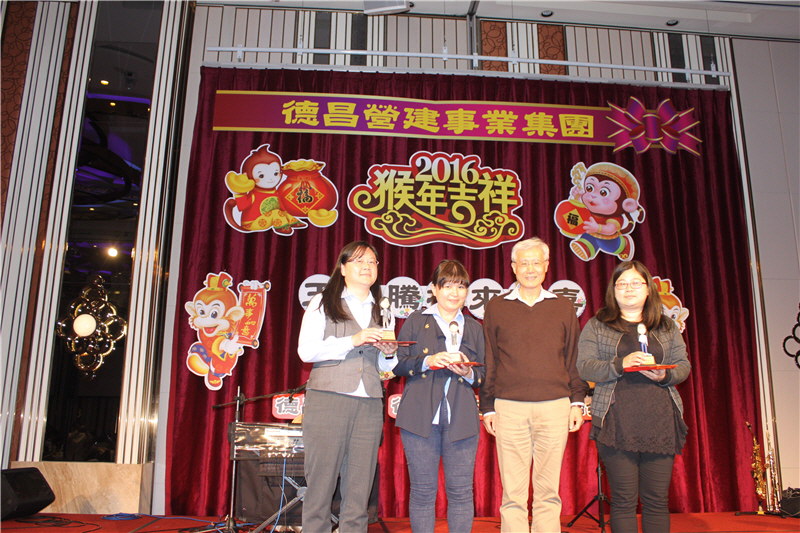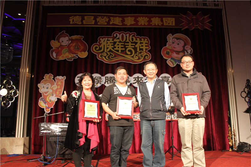 德昌營建事業集團2016春酒活動圓滿結束。德昌營建事業集團感謝員工一年來辛勞,今年春酒除有浪漫音樂表演、資深員工表揚、摸彩活動外,特別頒發優良廠商,感謝協力廠商的鼎力相助,期待今年德昌營建事業集團業績再創高峰。